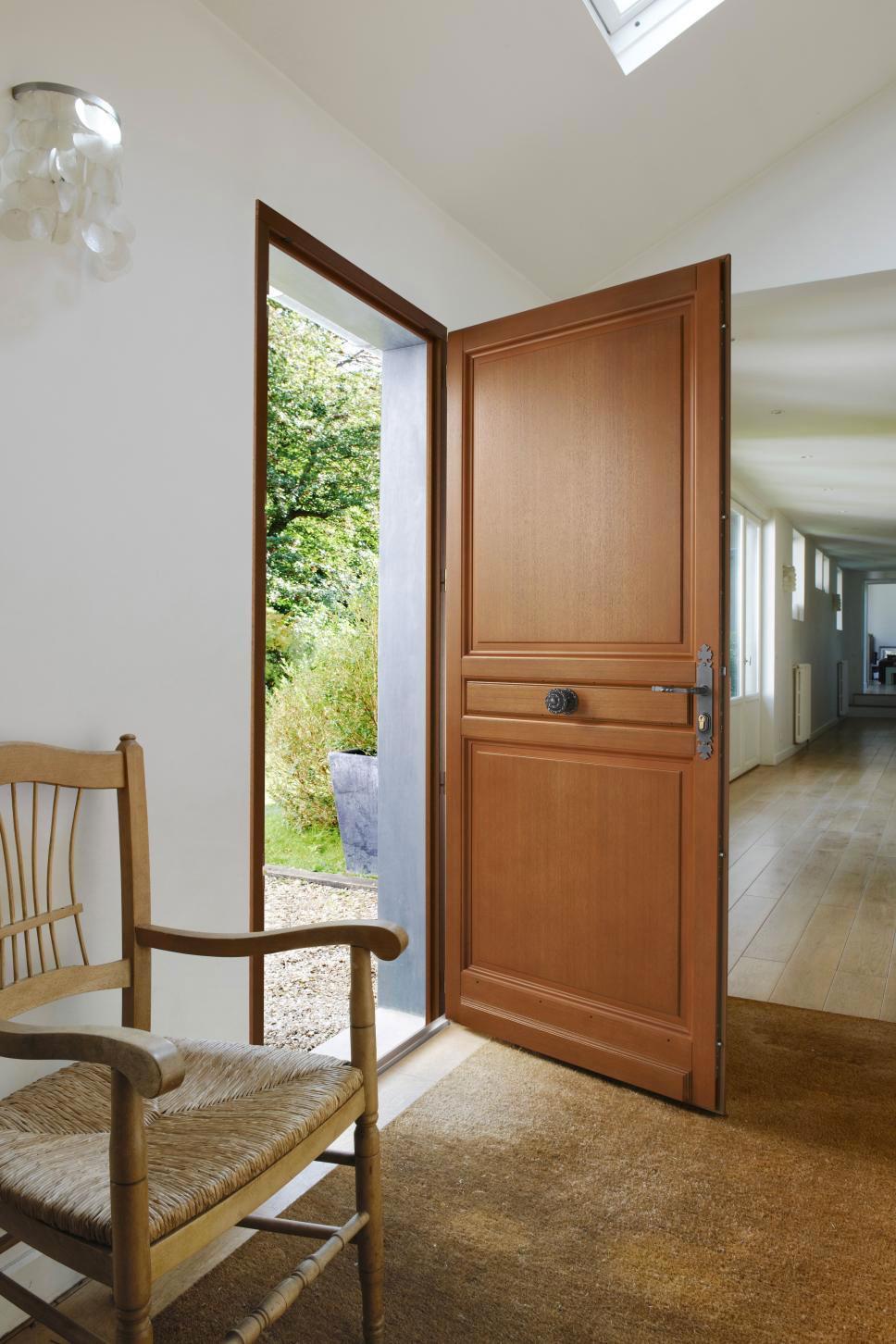 • des portes en bois classiques, pleines ou vitrées, qui peuvent être équipées de croisillons ou d’ornements en fer forgé pour donner de l’élégance à votre entrée ;