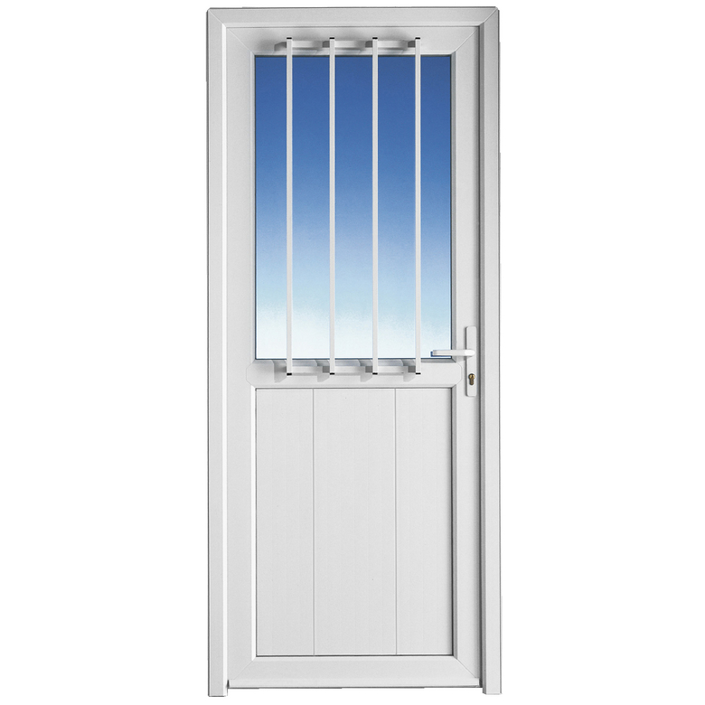 Selon vos besoins, vous pouvez opter pour des portes de service en PVC pleines, vitrées ou semi-vitrées. La conception de l’ouvrant et le remplissage avec panneau de 24 mm d’épaisseur assure une parfaite isolation afin de limiter au maximum les déperditions d’énergie. Elles sont pourvues de serrure de sécurité à 5 points de verrouillage. Certains modèles autorisent des options de sécurité supplémentaires comme un vitrage retardataire d’effraction, etc. Pour que votre porte de service en PVC s’intègre de façon harmonieuse au sein de votre décoration, différentes configurations sont proposées : un vantail avec imposte rectangulaire, surbaissée ou plein cintre.