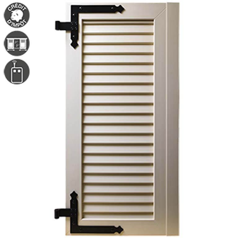 - Pégase : Solide et facile à entretenir, le volet battant ou coulissant Pégase est à lames verticales. Il dispose de parois d’environ 22 mm et est disponible en beige, blanc ou gris.