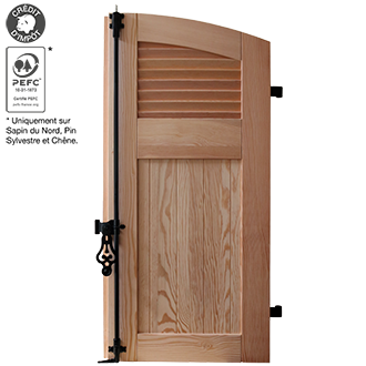 - Volet en bois Hadès : Réalisé en sapin en provenance du nord de l’Europe, le volet battant ou coulissant en bois 48 mm Hadès est éligible au crédit d’impôt grâce à ses hautes propriétés isolantes. Modèle traditionnel à lames verticales spécialement adapté aux habitats de montagne, il est pourvu d’une penture « queue de carpe » et de finitions en acier. Le volet en bois Hadès se décline selon différentes configurations afin de s’intégrer de façon harmonieuse à votre logement.
